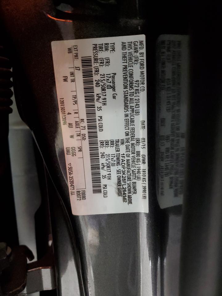 Машина оснащена 4 цилиндровым двигателем объемом 2.0 литров. Коробка передач - автомат. Тип топлива данной модели – бензин. Согласно фотоотчету с аукциона Copart пробег составляет 245 290 км. Номер кузова VIN - 1FADP3K28FL******.