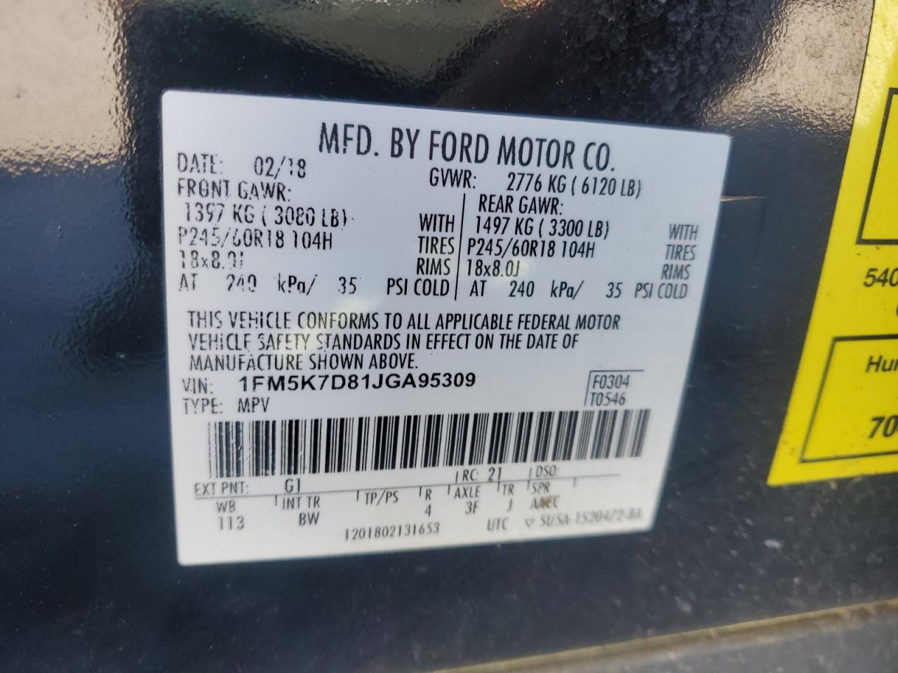 Машина оснащена 6 цилиндровым двигателем объемом 3.5 литров. Коробка передач - автомат. Тип топлива данной модели – бензин. Согласно фотоотчету с аукциона Copart пробег составляет 150 485 км. Номер кузова VIN - 1FM5K7D81JG******.
