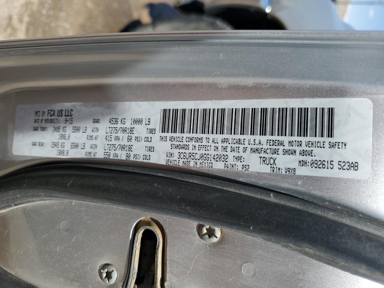 Машина оснащена 8 цилиндровым двигателем объемом 6.4 литров. Коробка передач - автомат. Тип топлива данной модели – бензин. Согласно фотоотчету с аукциона Copart пробег составляет 113 975 км. Номер кузова VIN - 3C6UR5CJ0GG******.