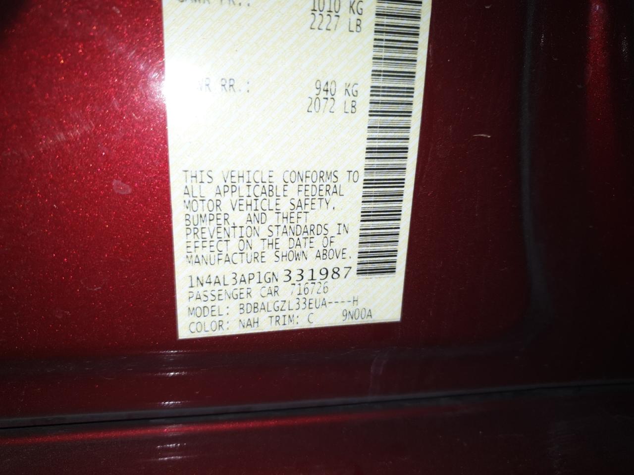 2016 NISSAN ALTIMA 2.5 ******
