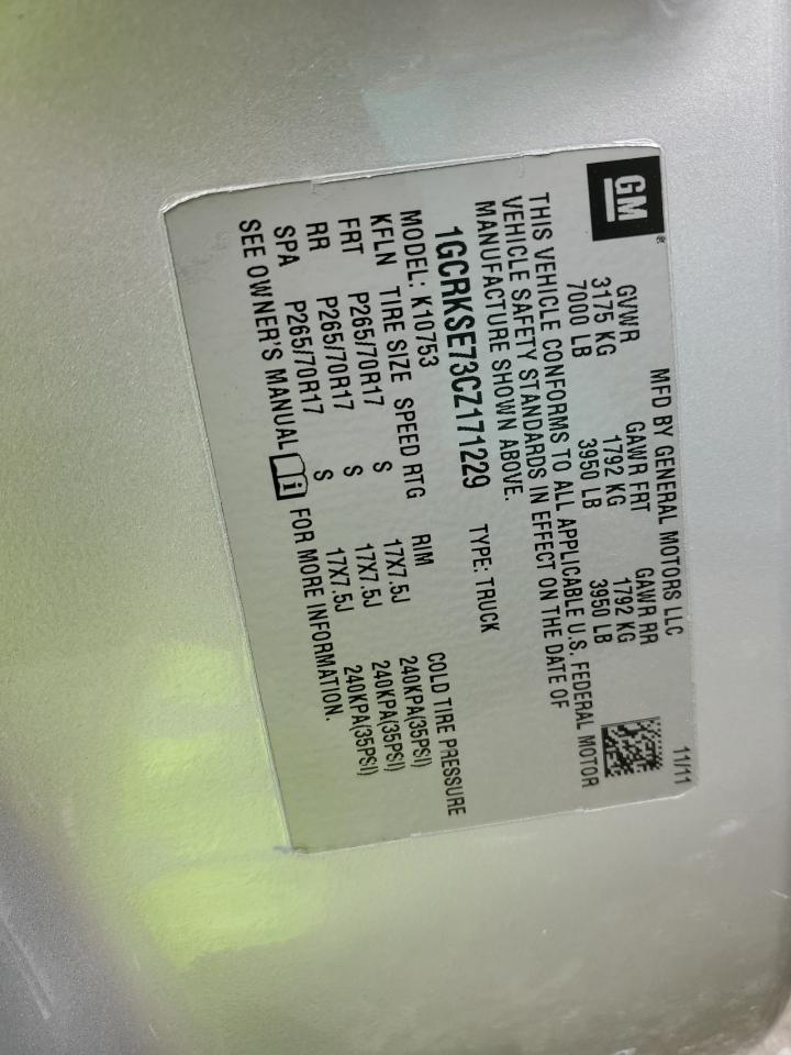 2012 CHEVROLET SILVERADO K1500 LT 1GCRKSE73CZ******