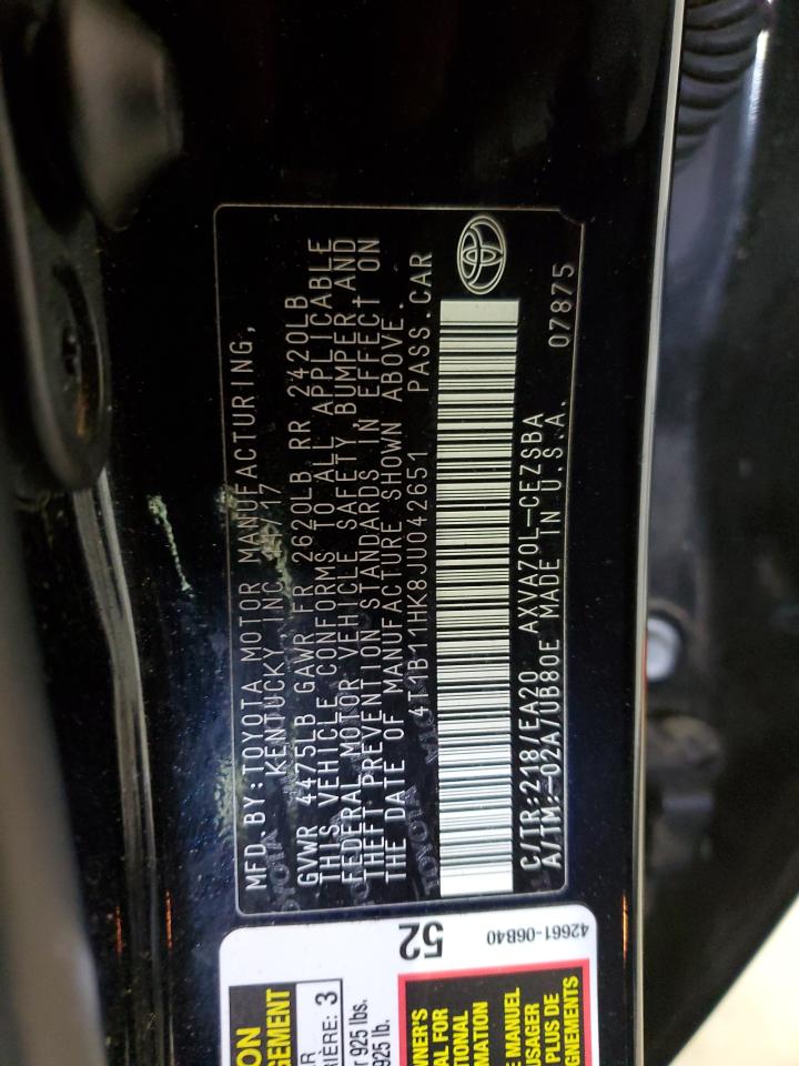 2018 TOYOTA CAMRY L 4T1B11HK8JU******