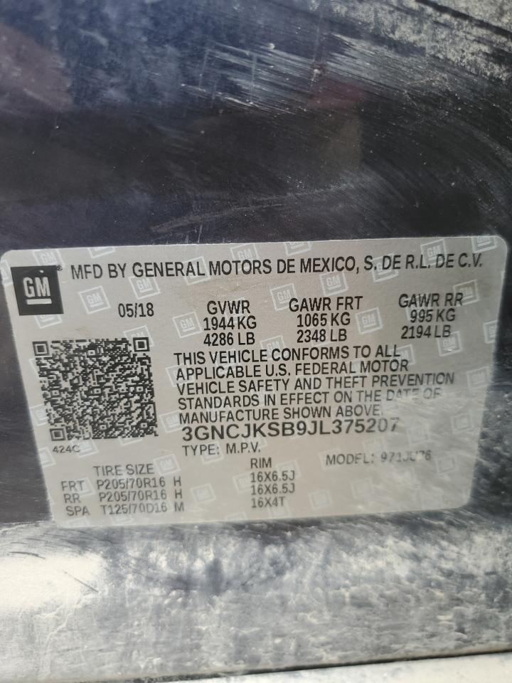 2018 CHEVROLET TRAX LS 3GNCJKSB9JL******