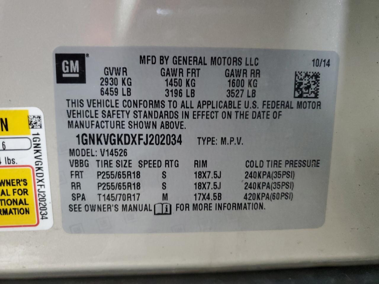 1GNKVGKDXFJ****** -
