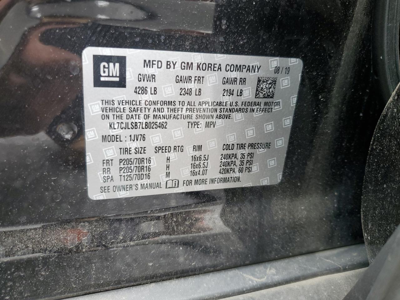Машина оснащена 4 цилиндровым двигателем объемом 1.4 литров. Коробка передач - автомат. Тип топлива данной модели – бензин. Согласно фотоотчету с аукциона Copart пробег составляет 59 425 км. Номер кузова VIN - KL7CJLSB7LB******.