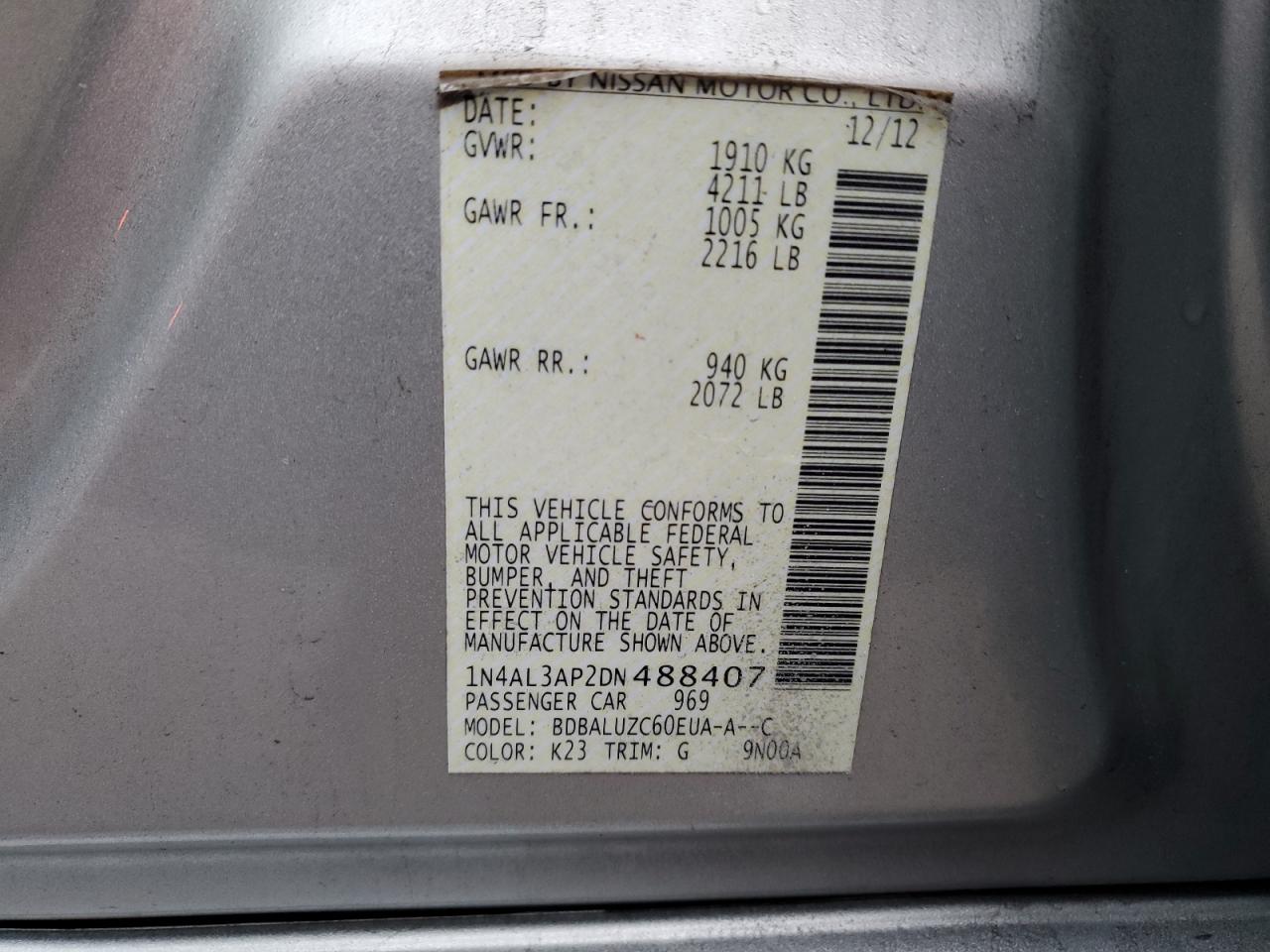 2013 NISSAN ALTIMA 2.5 1N4AL3AP2DN******