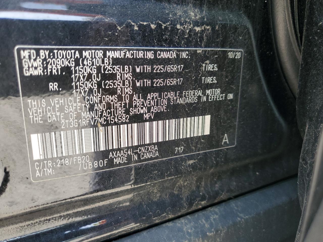 Машина оснащена 4 цилиндровым двигателем объемом 2.5 литров. Коробка передач - автомат. Тип топлива данной модели – бензин. Согласно фотоотчету с аукциона Copart пробег составляет 159 056 км. Номер кузова VIN - 2T3G1RFV7MC******.