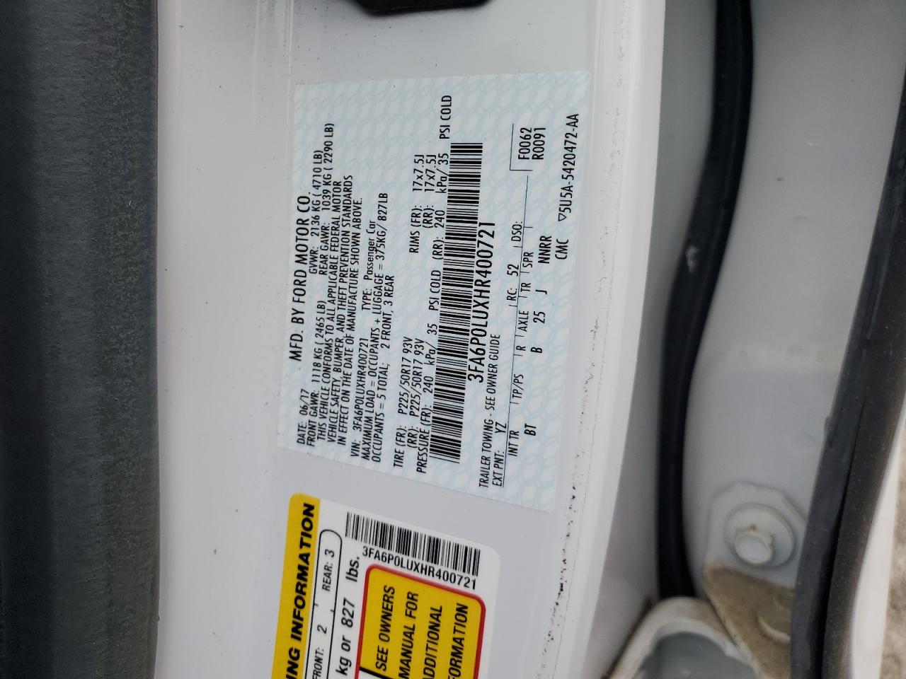 2017 FORD FUSION SE HYBRID 3FA6P0LUXHR******