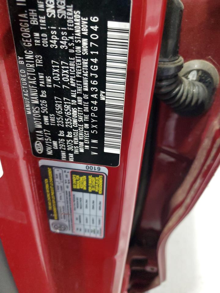 Машина оснащена 4 цилиндровым двигателем объемом 2.4 литров. Коробка передач - автомат. Тип топлива данной модели – бензин. Согласно фотоотчету с аукциона Copart пробег составляет 102 435 км. Номер кузова VIN - 5XYPG4A36JG******.