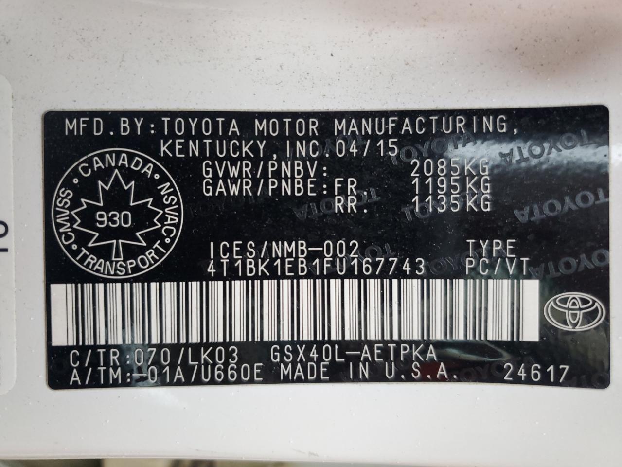 4T1BK1EB1FU****** -